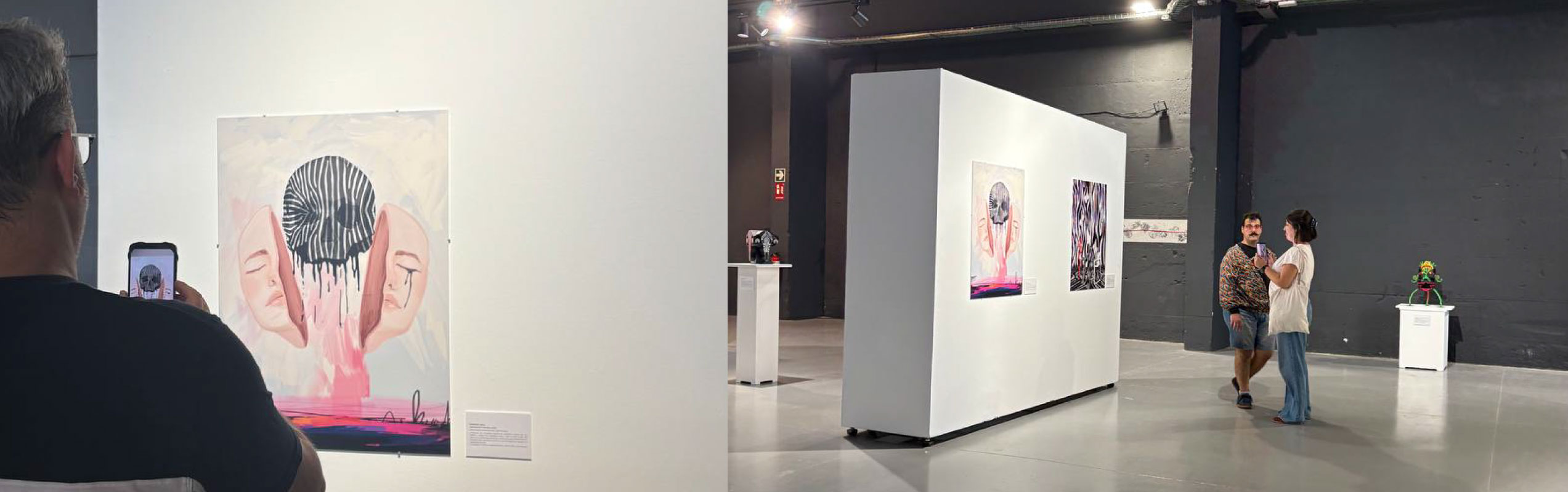 PAJARO AZUL GALLERY CALI COLOMBIA Collective exhibition Awakening is the origin of knowledge is a piece that seeks to show the duality between being in a state of reality that we feel comfortable and the contrast of opening the mind to other dimensions that allow us to know more and expand the possibilities of living alternate realities, new dimensions and accessing new levels